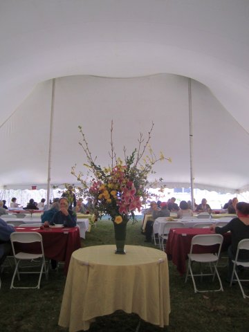 line for lunch-silence inside of tent statue inside - with Susan (we had dinner with her)