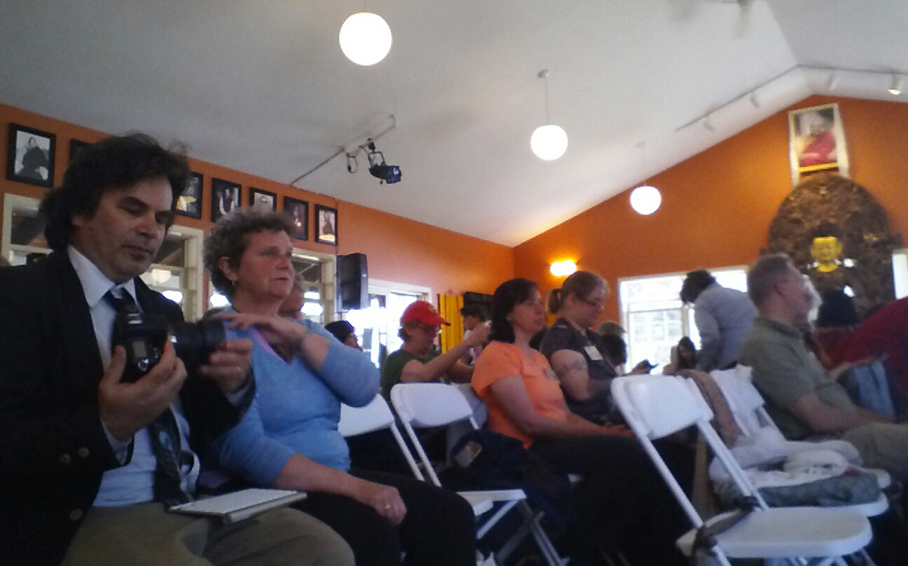 After lunch we meditated for an hour, and had a break During the break I stayed for yoga, I needed to stretch, those folding chairs were hard on the back. After the break Pema was just wonderful, she spoke from the heart, when she laughed her face lit up, being so close I had actual eye contact. We continued the teaching on the modern day bodhisattva. Some of the questions where quite insightful, and tear jerking. Pema was very thoughtful with her answers.