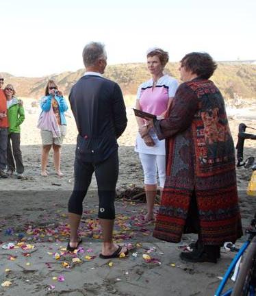 Today on the beach in Bandon a Cycle Oregon couple, Glenda and Matt got married.