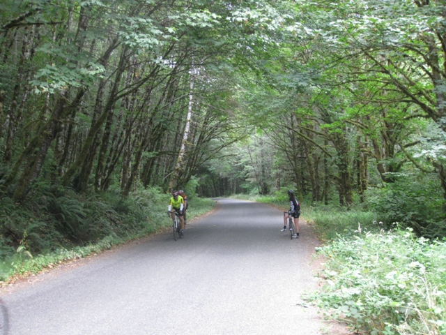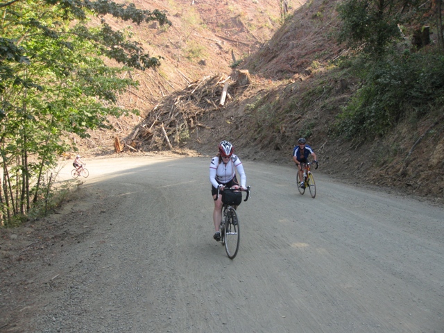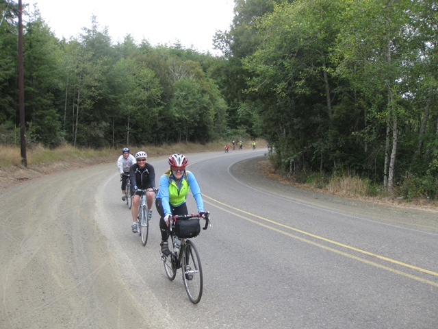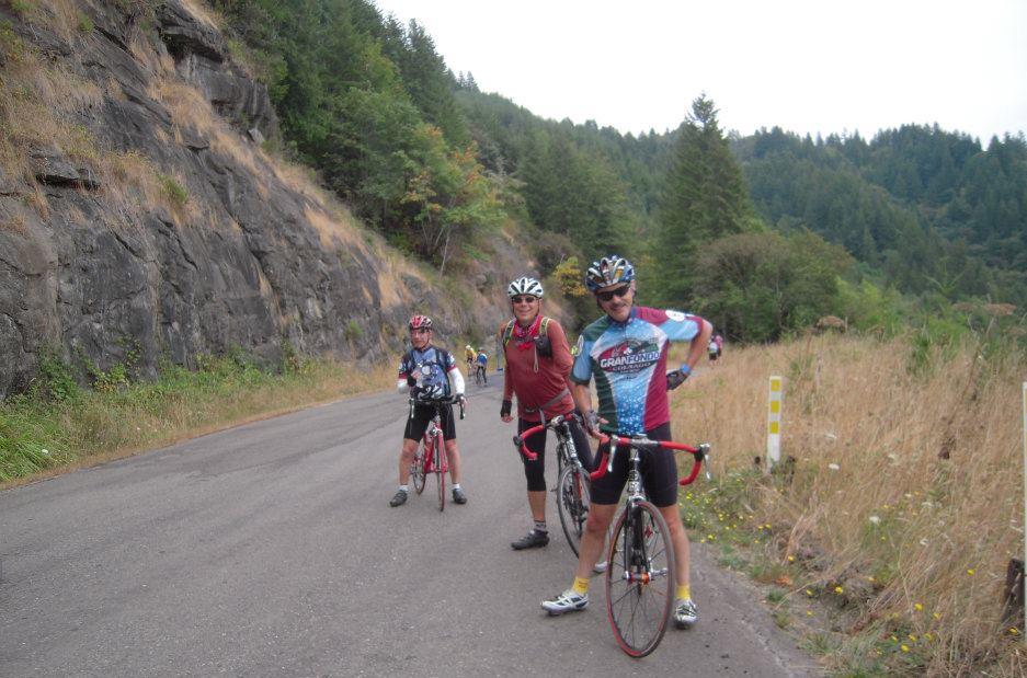 It's not all down hill to the coast. At this point (70 miles+) any incline is a climb. Mike, Jan, and Karl