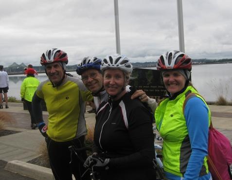 photo from Oregonian Cycle Oregon crossing 101 Rachelle, Jackie, and Mike