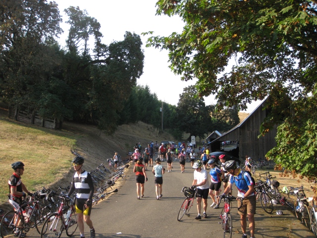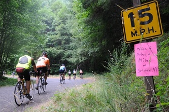 Just before the 12% climb the SAG van drove by playing "Darth Vador" theme song. The last climb was steep, but short. Many had to walked the climb,