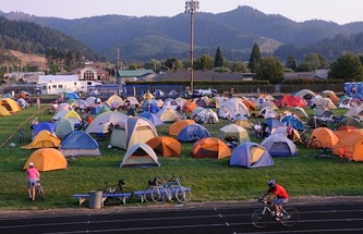 I didn't necessarily care for the layout of the Cycle Oregon camp, because we had to be shuttled to dinner on an old yellow school bus. We could have