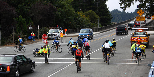 It was really nice and safe that the Oregon State Troppers stopped traffic on the 101 to help the cyclists cross the highway just before the McClullough Bridge.