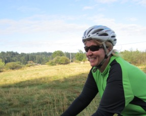 Jackie enjoying the farmlands and gentle rollers on the last day of Cycle Oregon.
