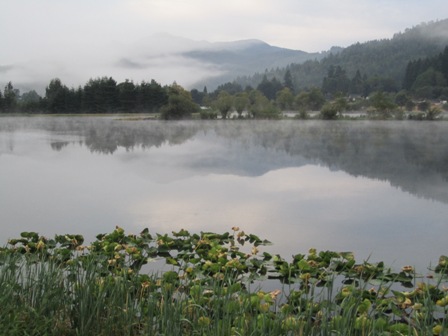 and the siren was to summon the volenteer fire department. We got up at 6:30 and Mike took this photo of the pond we were camped next too.
