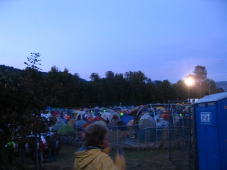 We found our bags, set up camp, waited for our friends to arrive, and then went to dinner. The dinner line was very long (maybe we stayed too long at the "Beer Garden" with our friends?).