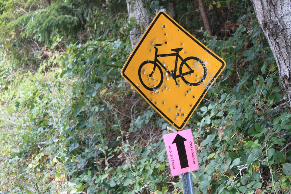 and always ready to shuttle riders to the top so they may do the descent or be taken to camp. Cycle Oregon marks the course using pink signs.