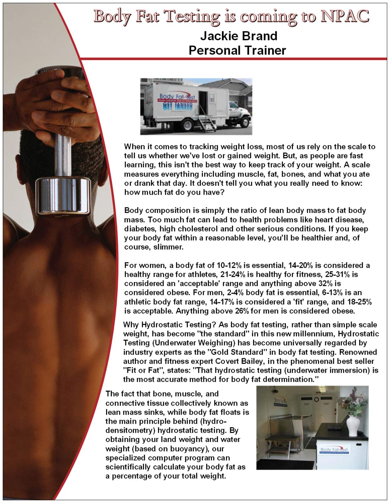 I will keep you posted when NPAC will be offering Hydrostatic Body Fat Testing.
